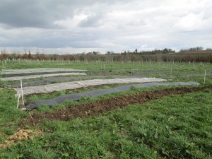 I’ve already made various stupid blunders in establishing the beds, most of them to do with complex technical issues such as my inability to count, tell left from right etc. But I don’t think they’ll compromise the results – the main thing is to make sure that I do the same things year on year across my three different systems, other than the key variables of interest which are basically tillage and fertility. I want to keep inputs as low as feasible, so I’m avoiding irrigation, transplanting etc as much as possible. I’ll see how it goes.