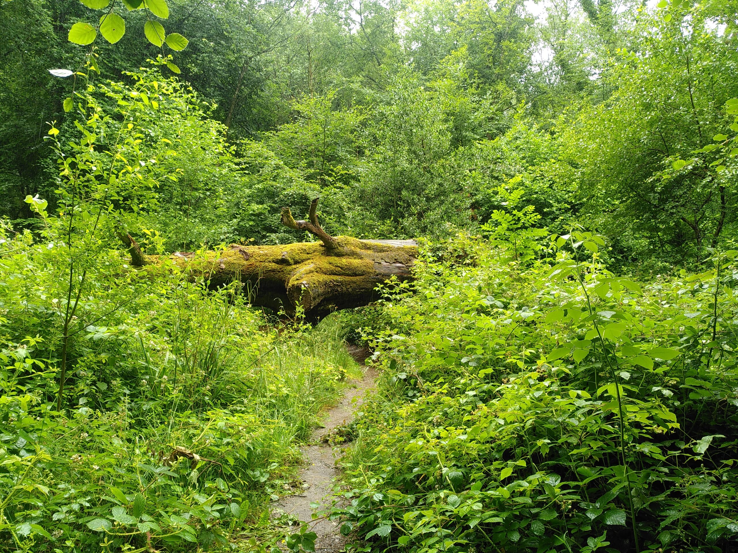 The underpopulation of the countryside tallied with the underuse of its fields. Occasionally there was a field of wheat, rape or the dreaded maize silage, but mostly it was temporary or permanent grass, sometimes with a smattering of dairy cows, the only livestock I saw – in about equal numbers to the people driving by. There’s something to be said for dairying in this area, and I’m not against it, but you could carve a lot of vegetable allotments out of these fields. The cows did save the day for me at one point, though. Lost along a fast, straight road that the map told me ought to be the footpath, I heard a mooing from below. Battling through the undergrowth, I looked down on herd of cows walking single file along an underpass where my own route lay. Peak Somerset.
